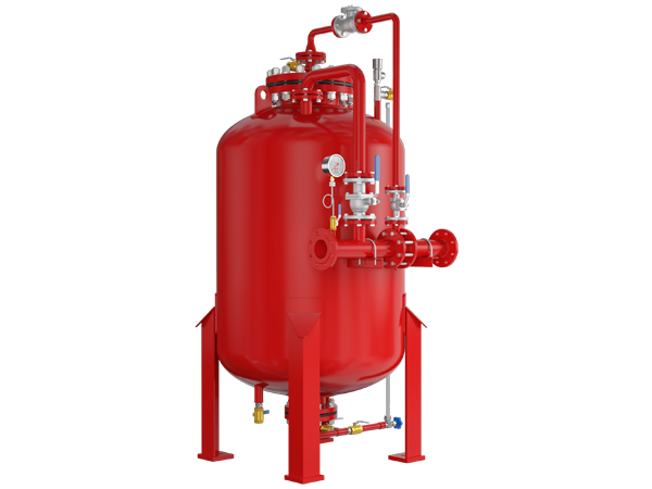 闭式泡沫—水喷淋装置主要由泡沫液储罐、泡沫比例混合装置、泡沫液控制阀、预作用装置、信号蝶阀及管道和配件等组成,属于自动喷水—泡沫联用灭火系统中的一种类型。它是在原有的湿式自动水喷淋基础上增加了泡沫供给装置,整个装置平时处于伺服状态,一旦被保护对象起火,该装置能迅速喷出泡沫将防护区覆盖,防止火灾蔓延,控制火势,然后利用消防水灭火,防止火灾复燃,是一种灭火效能高,应用范围广的固定式灭火设备。