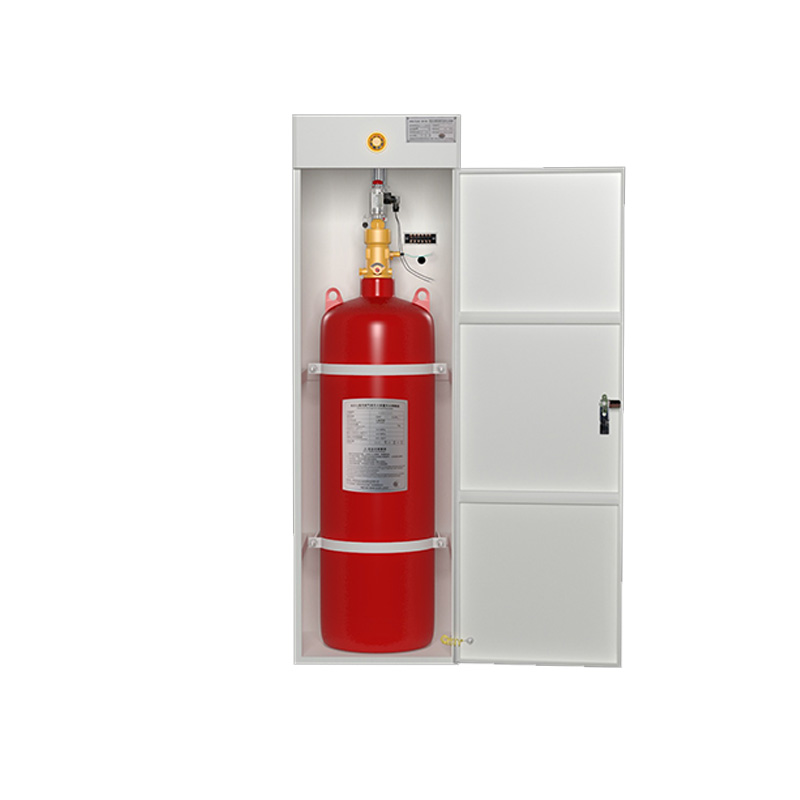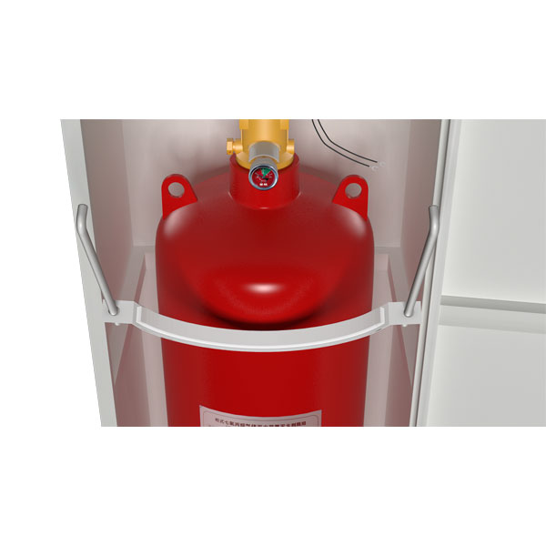 当火灾发生时,灭火控制系统接收到信号,启动与容器阀连接的电磁驱动装置。高压氮气推动HFC-227ea(七氟丙烷)灭火剂从贮存钢瓶内通过柜体内置喷嘴释放,灭火剂迅速扩散至被保护空间,以扑灭火灾。
